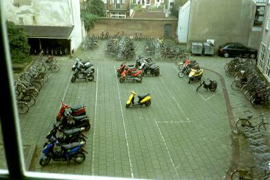 Looking at the amount of cycles : the beginning or the end of the working day?? I love the sight of all those colorful mopeds, not the noise or the way they are usually driven.